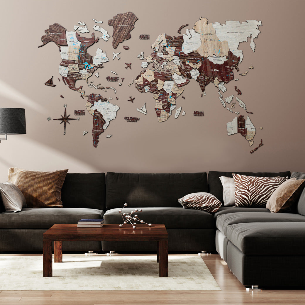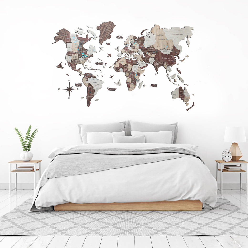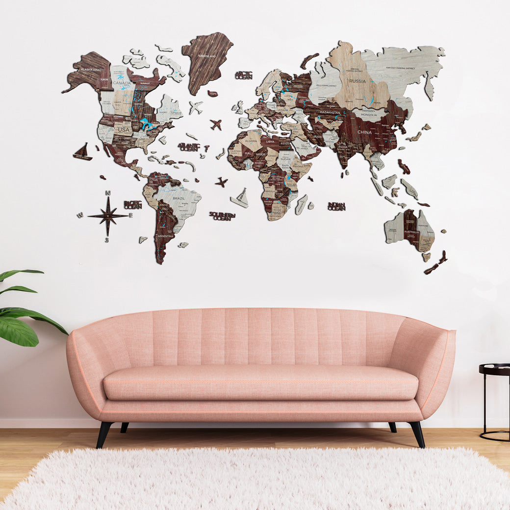 3D Wood World Map カプチーノカラー 木製世界地図 【南極大陸なし】【約1週間で納品】【セール品は在庫なくなり次第終了】