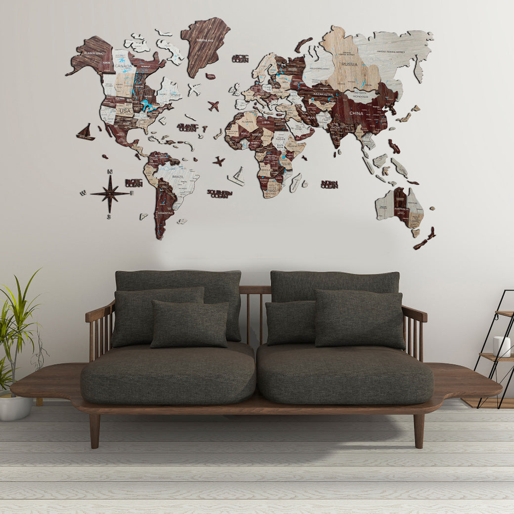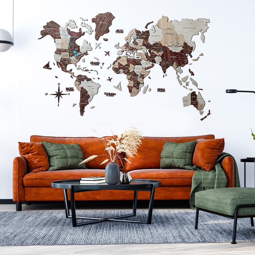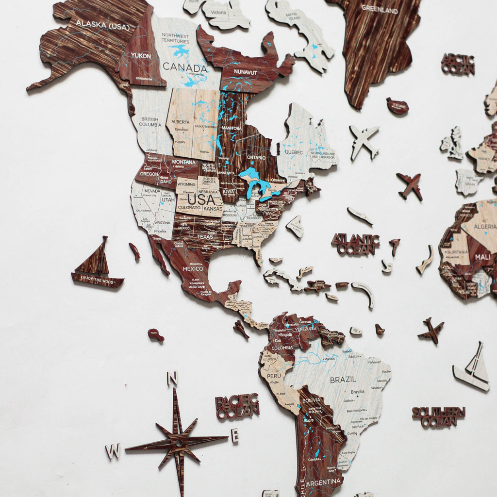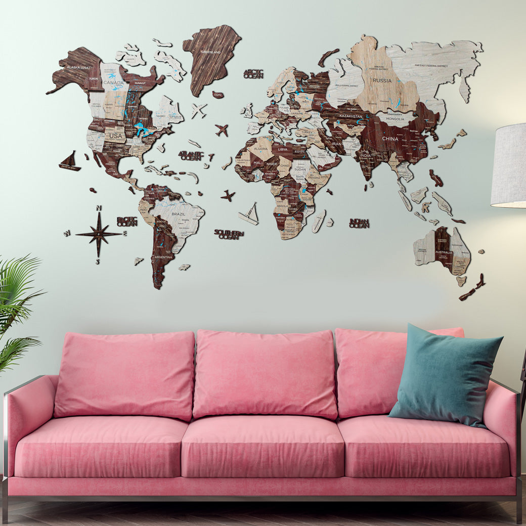 3D Wood World Map カプチーノカラー 木製世界地図 【南極大陸なし】【約1週間で納品】【セール品は在庫なくなり次第終了】